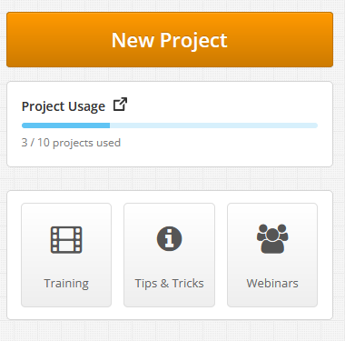 You will also be able to see how close you are to using all your projects for your current billing period. The project usage tracker will be blue when you have plenty of projects remaining, will turn orange when you are nearing your project cap, and red when you have used all your projects for the billing period.
