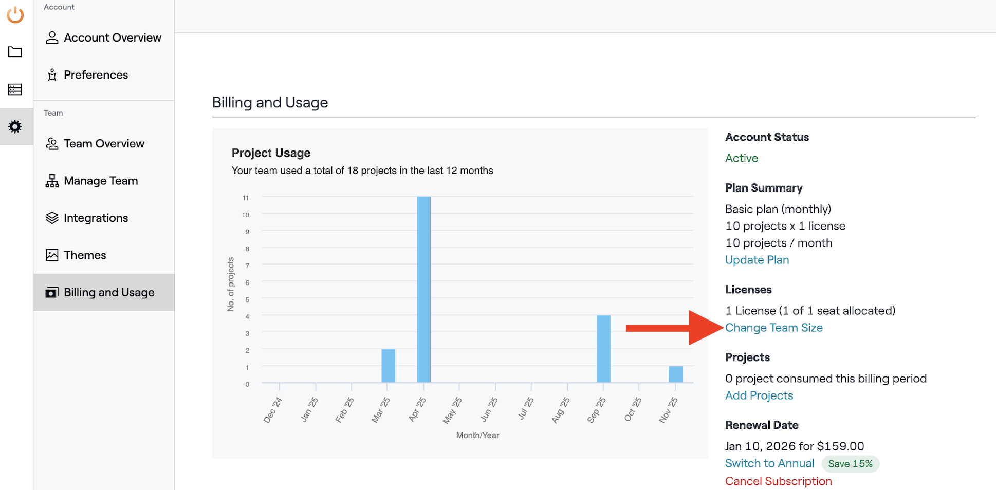 Select "Change Team Size"