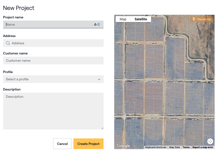 Make sure to center the crosshair on the building or area where the system will be designed. - Enter the Customer Name. This is typically the name of the property owner.