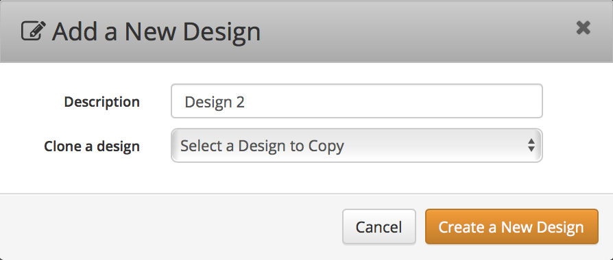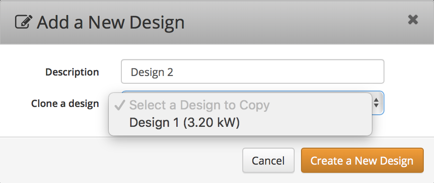 3. To create an exact copy of an already existing Design, clone the Design by selecting it from the drop-down menu.