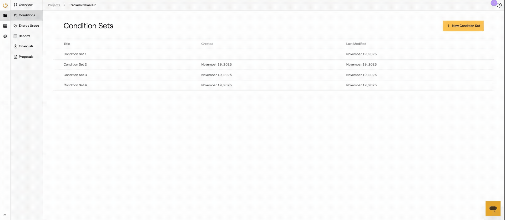 The Conditions Page allows users to edit, rename, and delete existing Condition Sets or create new ones