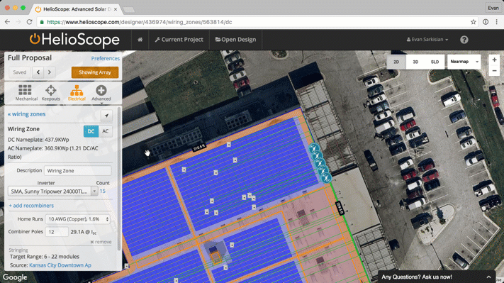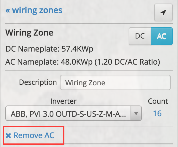 If you prefer to use the AC losses in the Condition Set, you can click Remove AC and the AC wiring will be removed from the electrical portion of the design. HelioScope will default to the electrical losses in the condition set. Click the following link to learn more about AC Wiring.