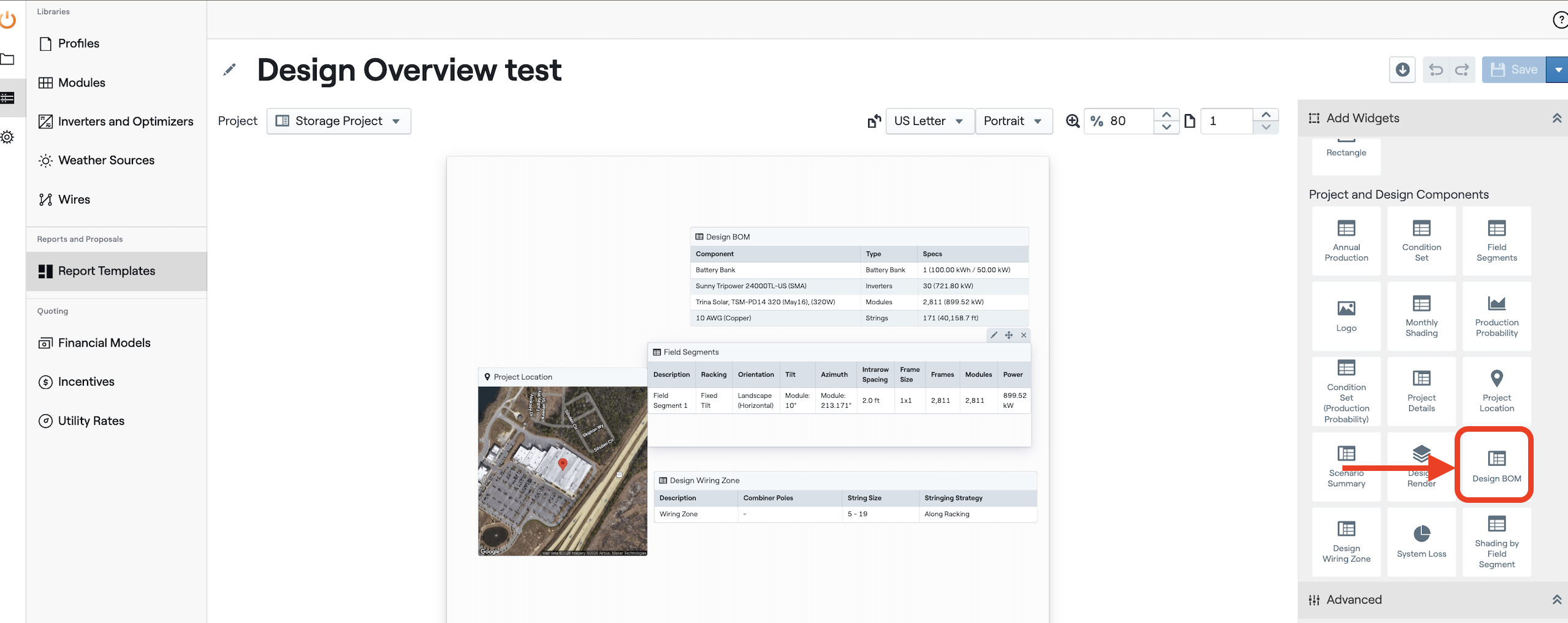 If you are editing an existing report or creating a custom report, you can also add the BOM widget to your report to include the specs of your Storage System