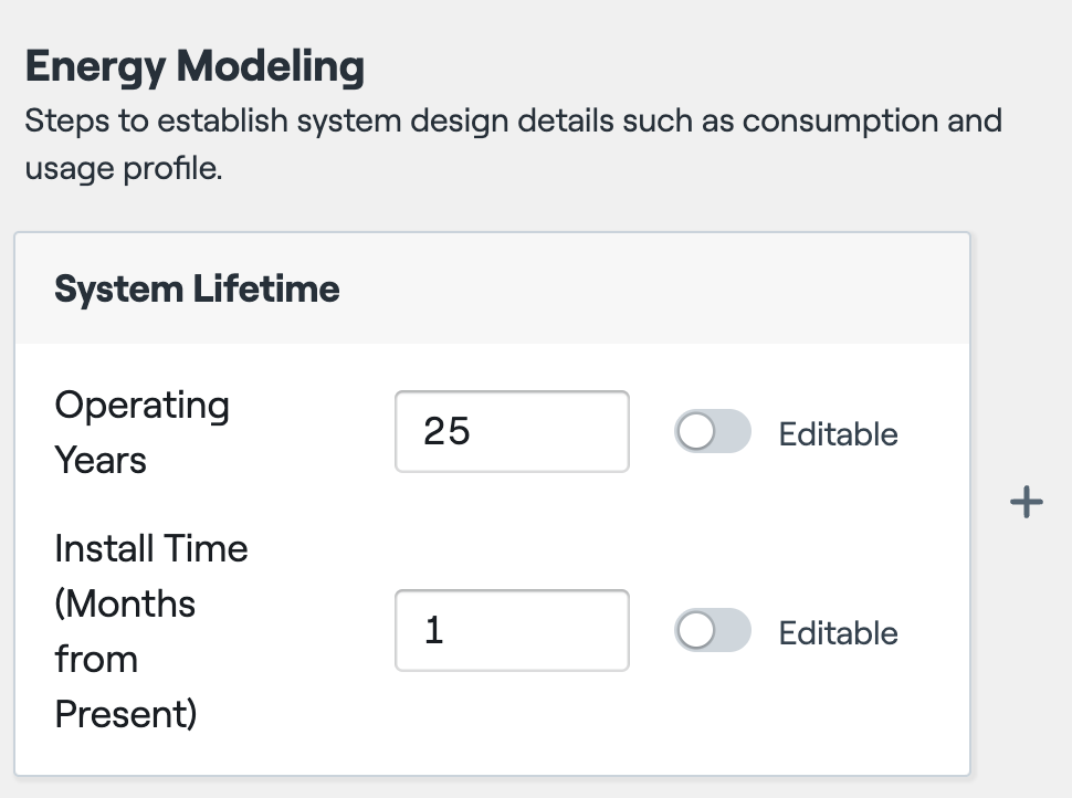 Note: Make sure to adjust the "Install Time", to dictate how many months from the present the system installation will take place, as this input will affect the start month of your cash flow.