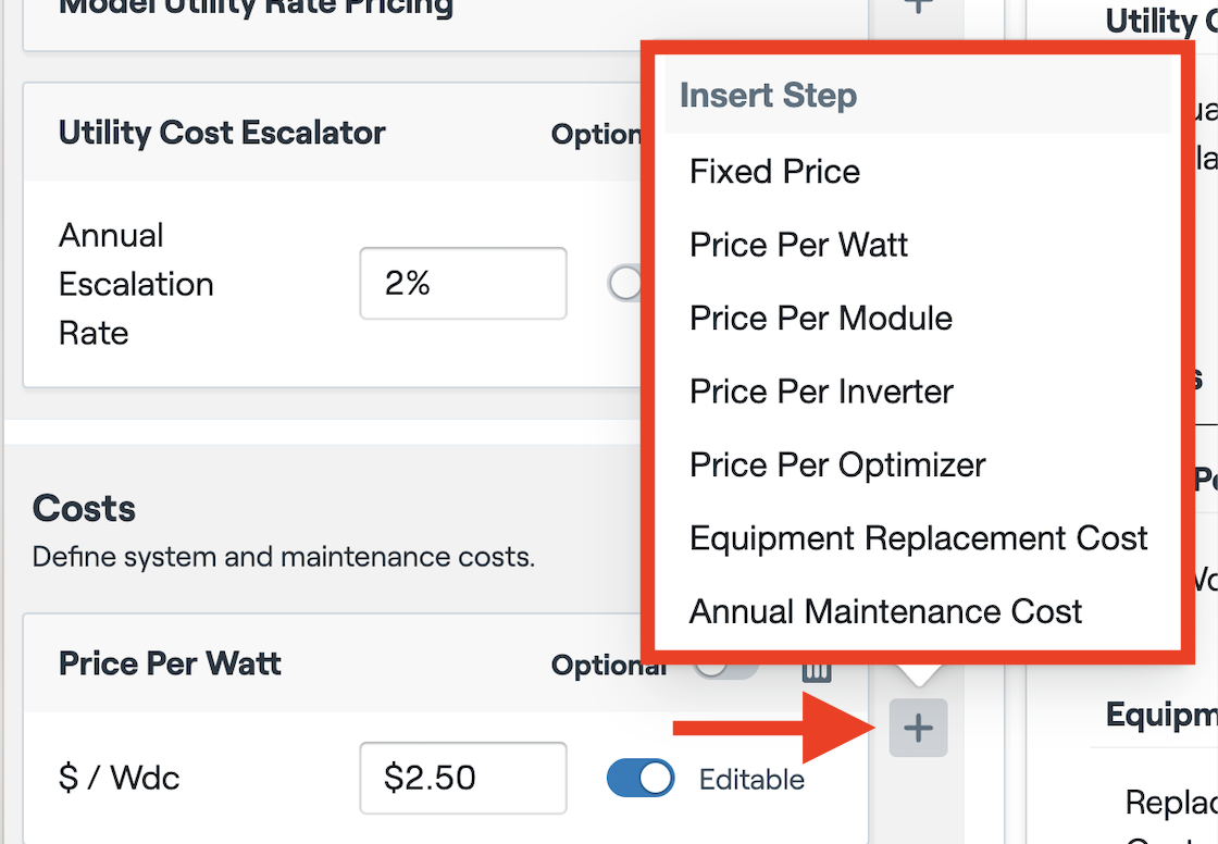 - 8. To add a financial step, click the + sign to the right of a step that is in the model. After selecting your desired step, it will be added below.