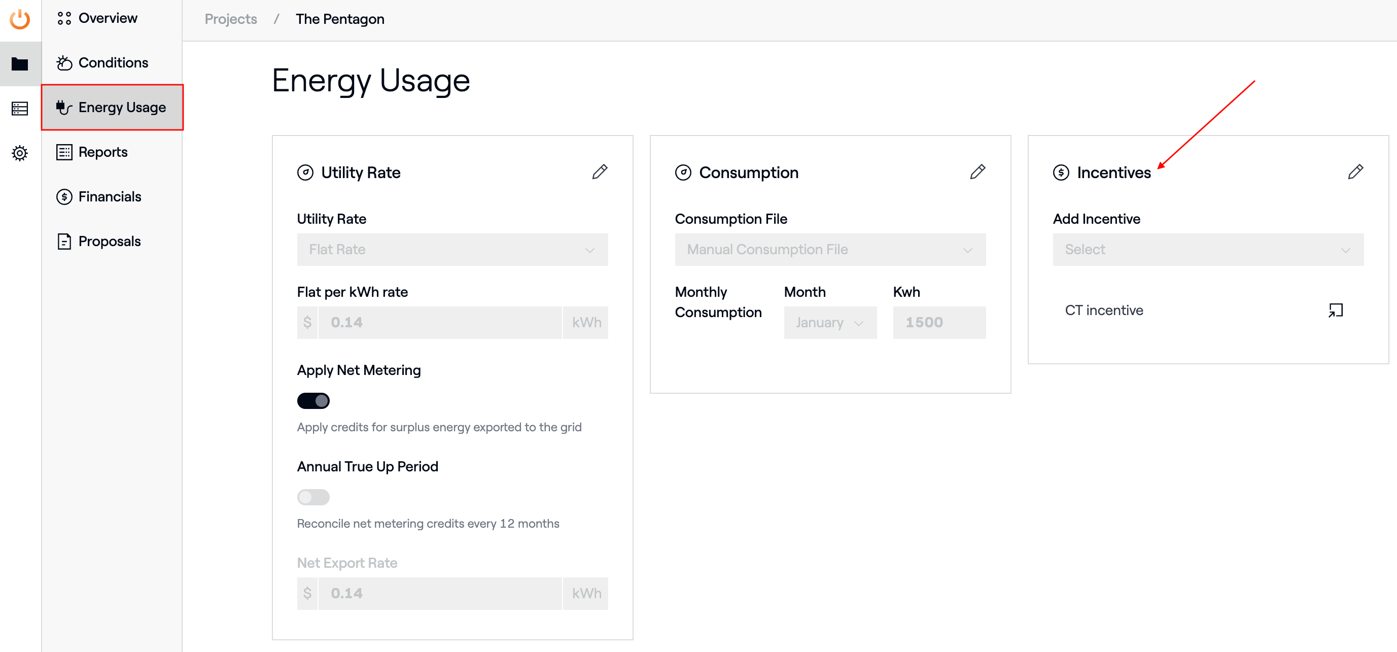 After completing the steps above, you can now add your incentive to your project from the Overview page. Click the "Add Incentive" button and search for your new incentive.