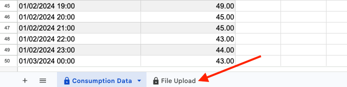 - Navigate to the "Consumption Data" tab at the bottom of this document.